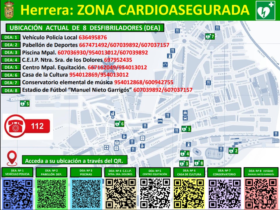 Tras el apoyo incondicional de la Diputación Provincial de Sevilla para la ampliación y dotación de 4 nuevos dispositivos (DEA) Desfibrilador Externo Automatizado. El Municipio de Herrera cuenta ahora con 7 desfibriladores ubicados en distintas dependencias del Ayuntamiento.